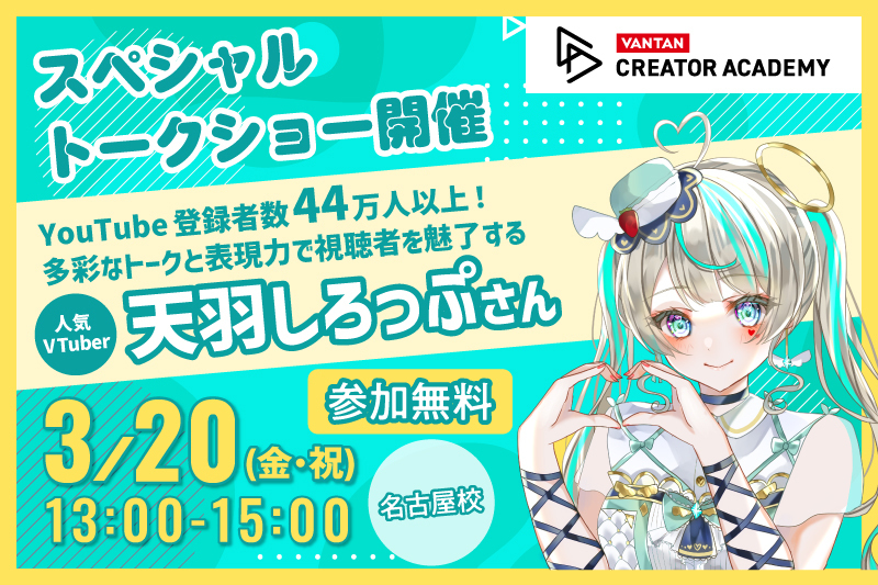 VTuberの枠を超えて活躍する天羽しろっぷさんが、なんと名古屋校にやってきます✨️※中継