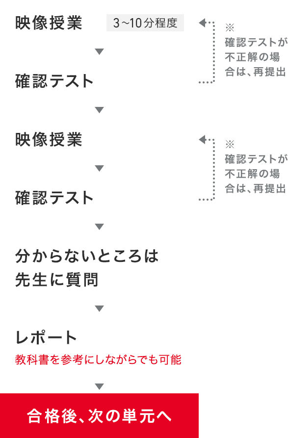 映像授業なので理解できるまで何度でも視聴可能。また、レポートも教科書を参考にしながら解答できるので安心です。