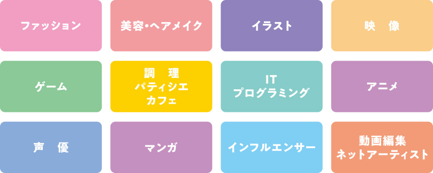 専⾨的なスキルを⾝に着けてその道での就職を⽬指すことができます。