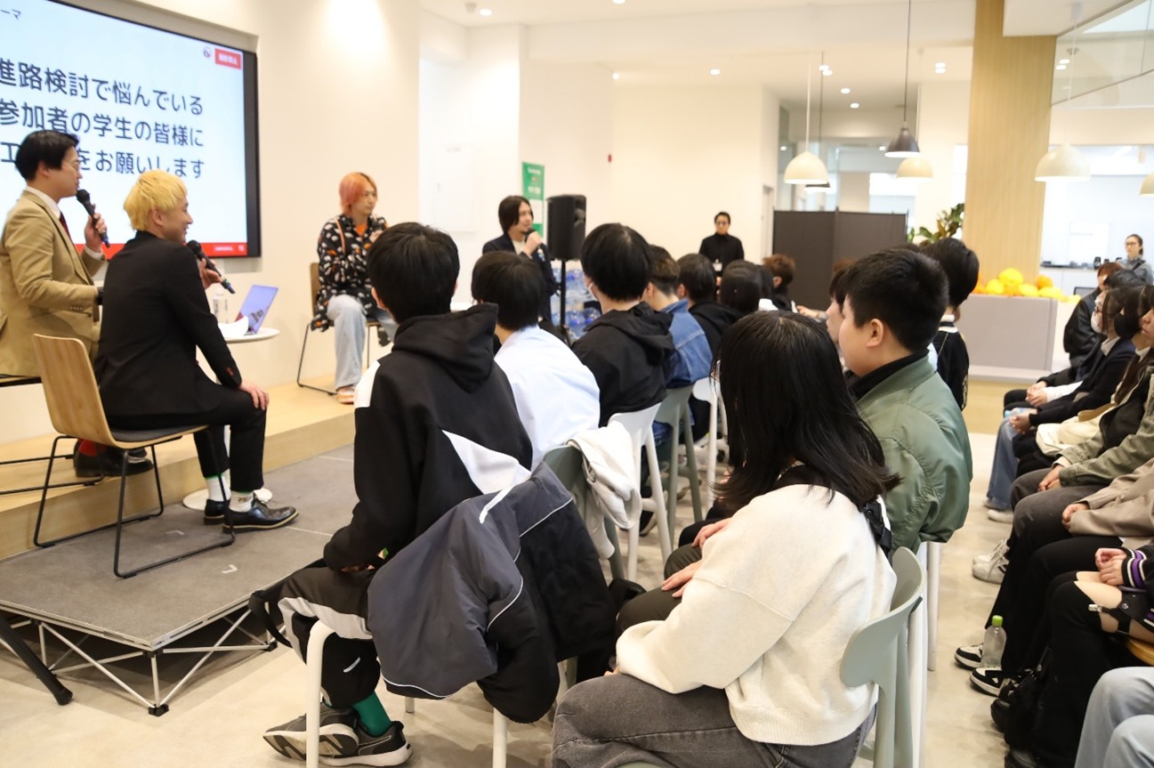 吉本興業所属の芸人『しゅんすけ』さんによる司会進行のもと、クリエイターになるきっかけやターニングポイント、クリエイターとマネージャーの関係性についてなど、業界を目指す学生たちが知りたい話題をたっぷりと語っていただきました!